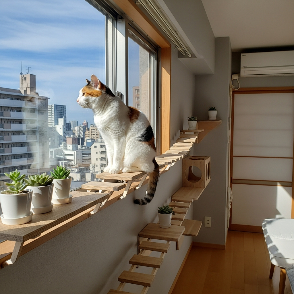 - キャットウォークやキャットステップを壁に設置